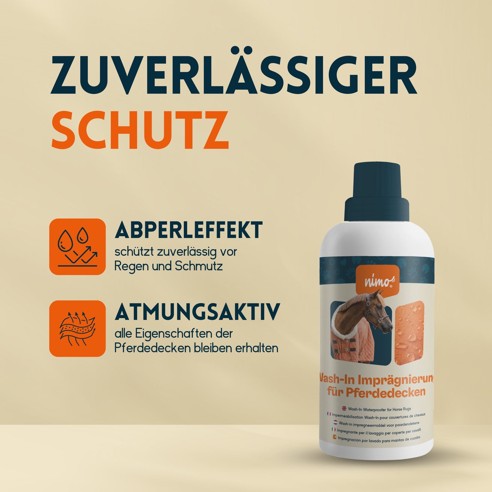 La protection contre la pluie à l'épreuve des enclos : Cette imprégnation lavable, douce pour la peau, est spécialement conçue pour les couvertures pour chevaux et possède une formule innovante de protection des tissus. Protège efficacement les couvertures de l'humidité et de la saleté et assure d'excellentes propriétés hydrofuges.