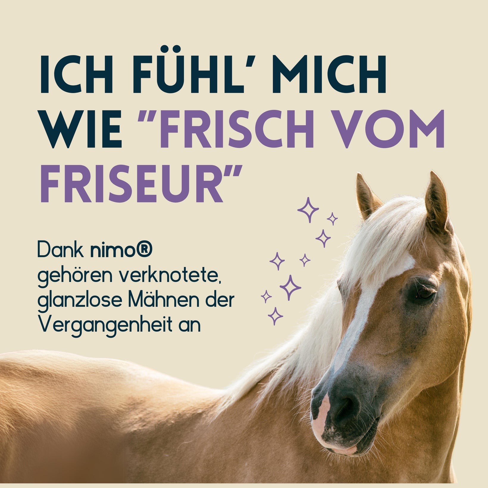Mähnenzauber für Dein Pferd: Pflegt Fell, Mähne und Schweif Deines Pferdes auf natürliche Weise und sorgt langanhaltend für Geschmeidigkeit und Glanz. Verleiht jedem Felltypen seidigen Glanz und löst sanft Verfilzungen und Knoten. Jedes einzelne Haar wird mit einem speziellen Schutzfilm versiegelt und verhindert langfristig das übliche Verhaken und Verknoten der Haare. Ganz ohne Lösungsmittel und Alkohol, somit für Dich und Dein Tier völlig unbedenklich.