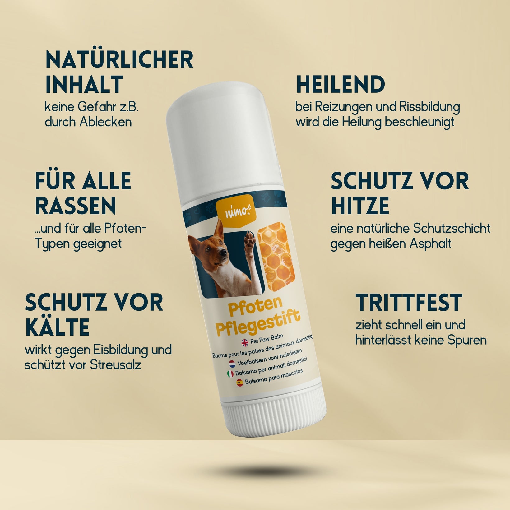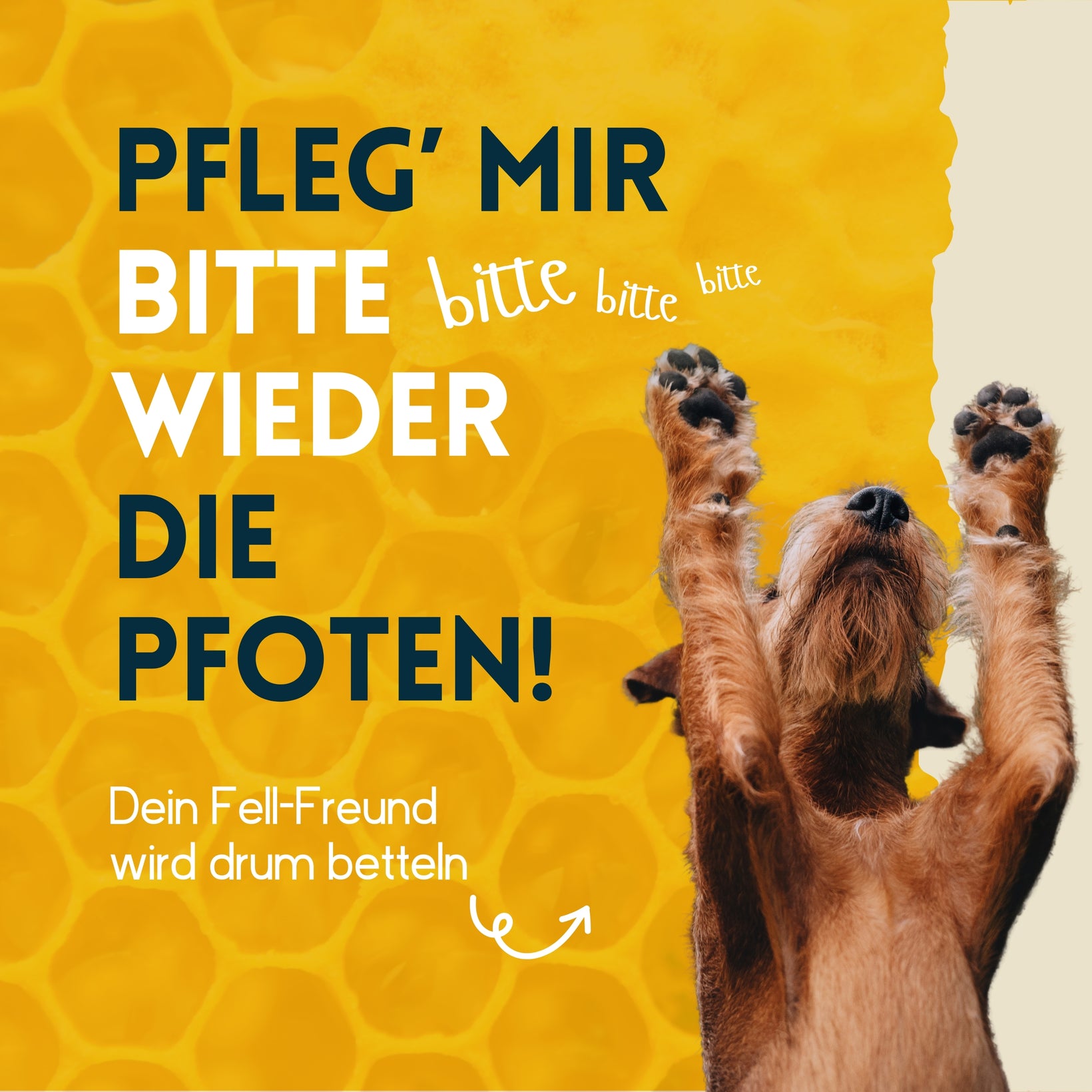 Pflege mit Propolis: Bienenwachs und Propolis zur einfachen Pflege von rissigen und empfindlichen Pfoten. Zieht schnell ein und ist trittfest. Mit natürlichen Inhalts- & ohne Konservierungsstoffen.